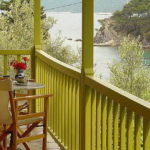 Ein paar Schritte dahinter, am Ende der Sackgasse, liegen die Lithea Apartments und Studios – in der Inseltradition gebaute Steinhäuser, charmant und einladend. Drei Apartments und vier Studios gibt es, die Studios liegen in einem Steinhaus, das schon Panagiotis Vater gebaut hatte, die Apartments kamen neu dazu. Es wird auf umweltschonendes und energiesparendes Wohnen wert gelegt, und Holzdecken, Nischen, Treppen, viele Details machen alles sehr gemütlich. Die Studios sind einfach und farbenfroh eingerichtet, in den Apartments schwingt ein bisschen Landhaus-Stil. Jede Einheit hat Persönlichkeit und ist gut ausgestattet, hier urlaubt man unabhängig und im eigenen Rhythmus. Liegestühle, Hängematten, kleine Tischchen – alles entspannt schon beim Hinsehen, und allein der Gedanke an die herrliche Bucht, Schwimmen vor dem Frühstück oder dem ersten Kaffee auf der Terrasse und all die Ruhe rundherum macht schon sehr zufrieden…